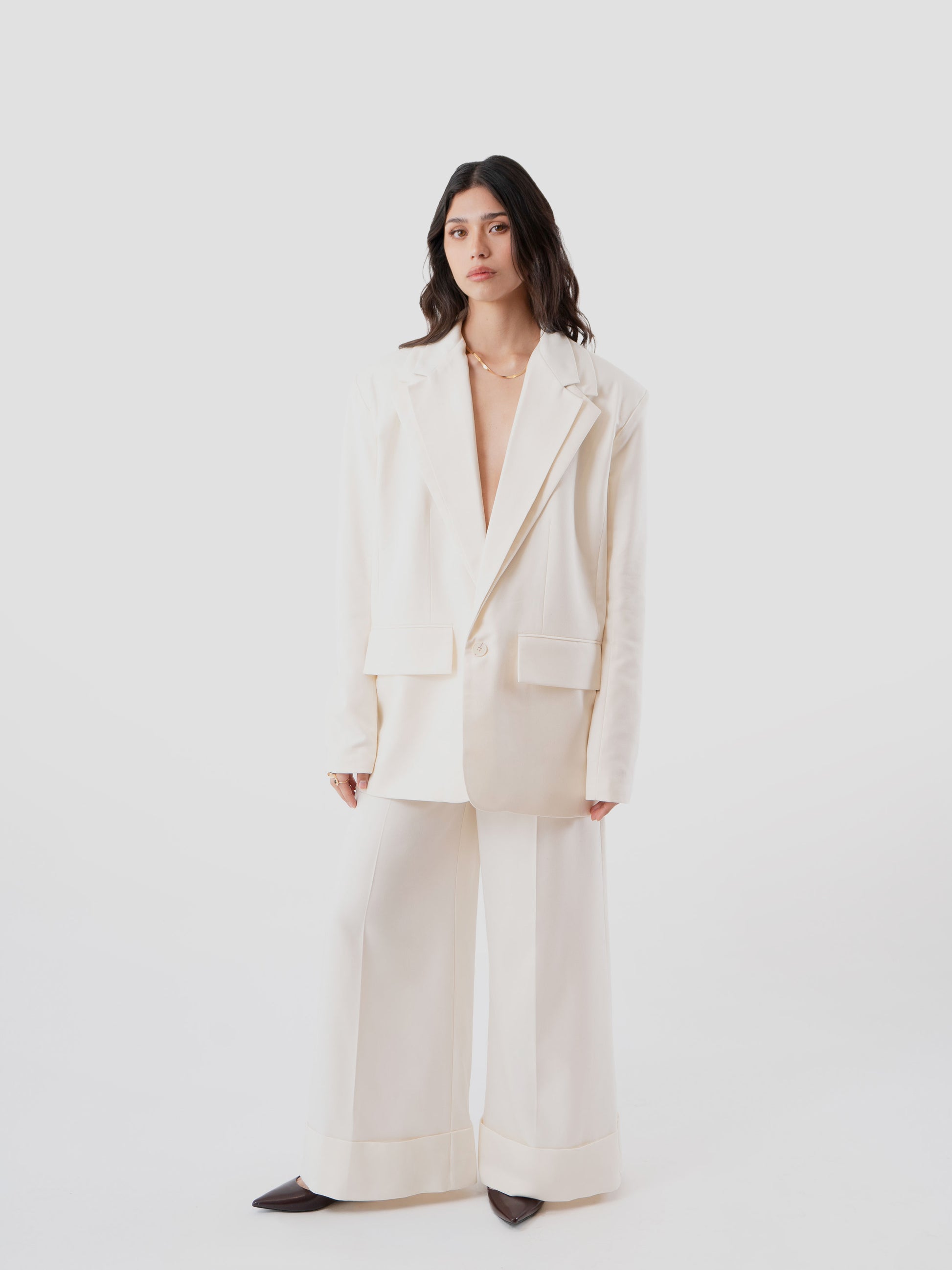 A full-length, high-rise trouser crafted in a midweight suiting fabric, designed for a clean, elongated silhouette.