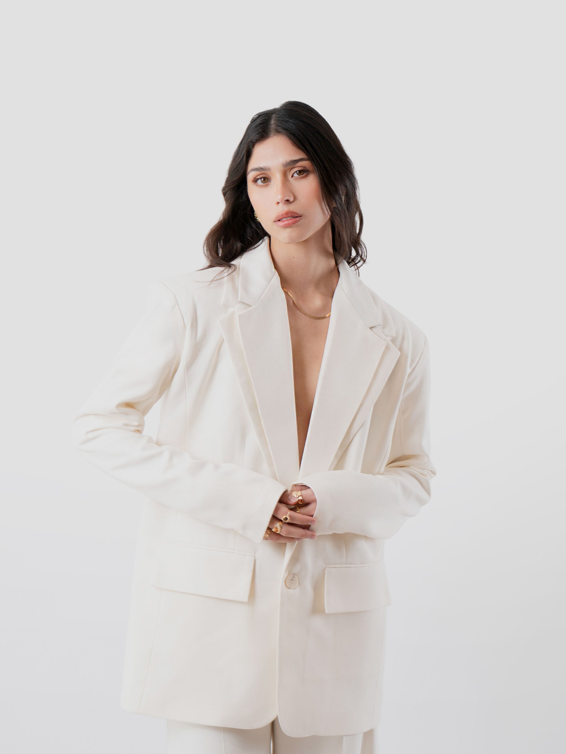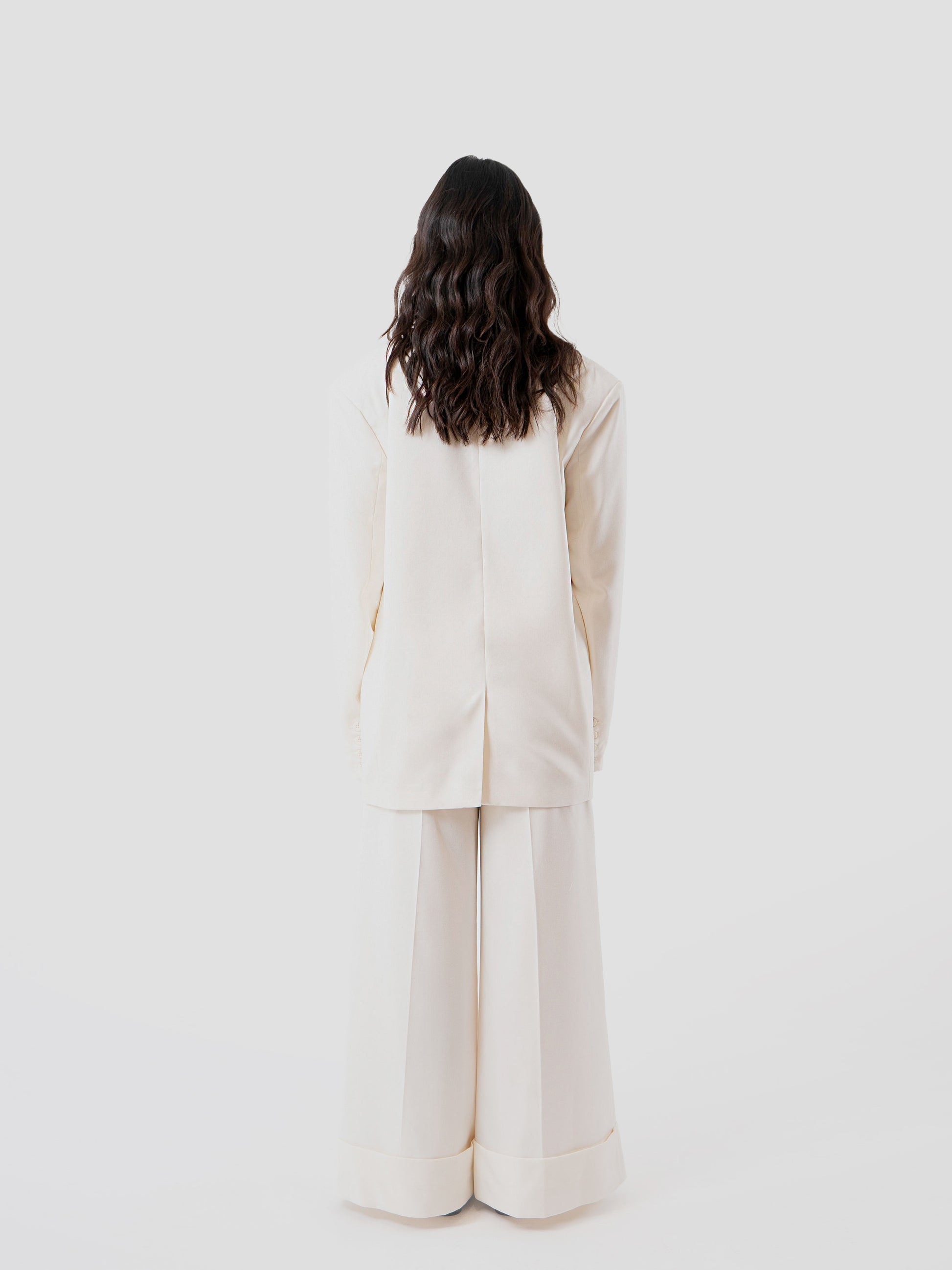 A relaxed oversized blazer crafted in a refined suiting blend. Designed with a double lapel and a clean, elongated silhouette, it balances structure and ease for confident, everyday wear.